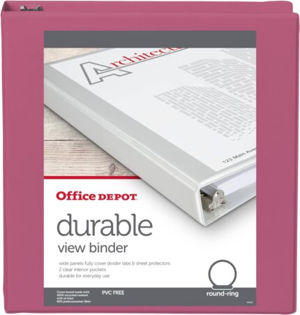 Office Depot® Brand 3-Ring Durable View Binder, 1-1/2″ Round Rings