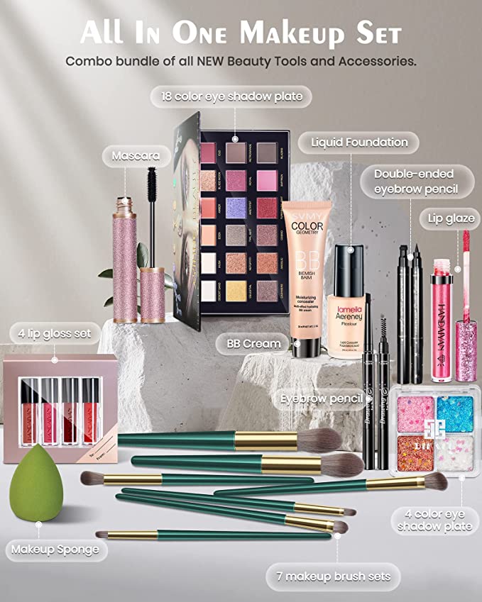 kits for Teens or Adult, All in One Makeup Sets Include Eyeshadow Lipstick Labial Glaze Concealer Mascara Eyeliner Etc.
